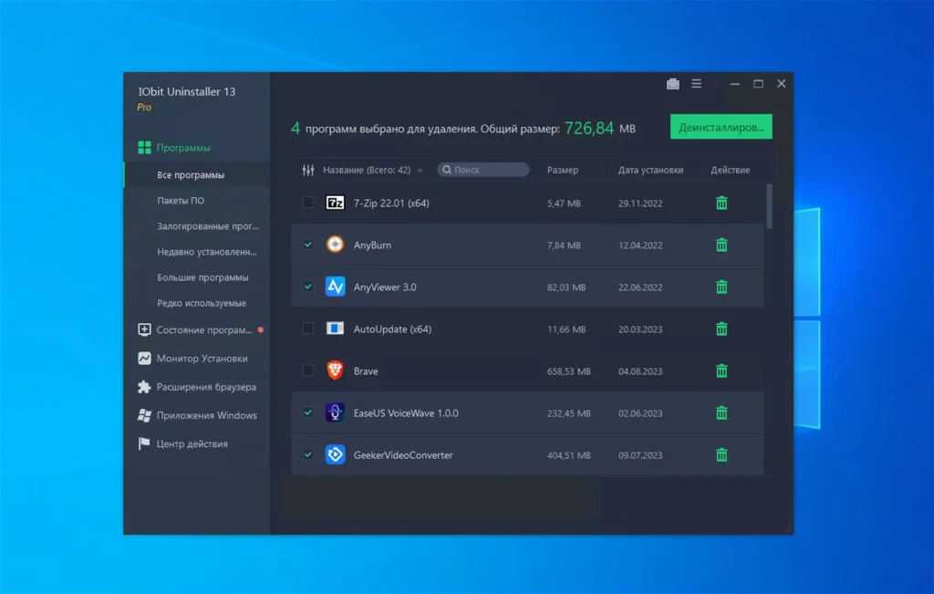 IObit Uninstaller, programları ve tarayıcı eklentilerini tamamen kaldırarak sistemde gereksiz dosya kalıntılarını temizler.